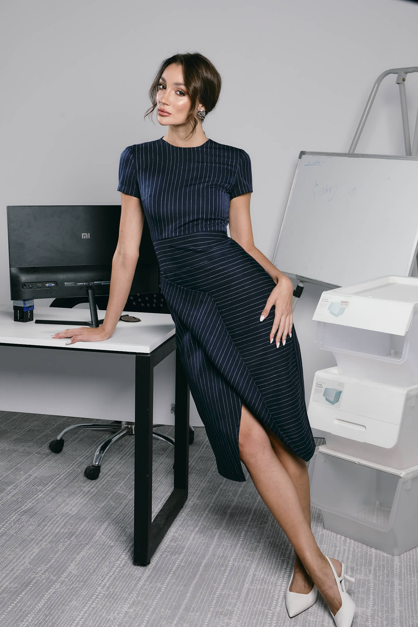 This work dress combines professionalism with style, making it the perfect addition to any work wardrobe. The sleek design exudes confidence, while still giving off a chic and fashionable vibe. Look and feel your best in this versatile dress that seamlessly transitions from the office to after-work events.